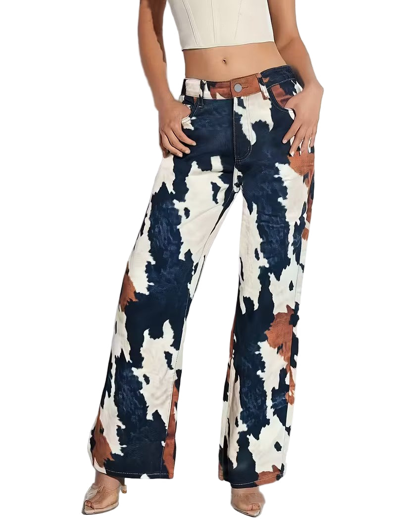 Damskie Szerokie Spodnie z Nadrukiem